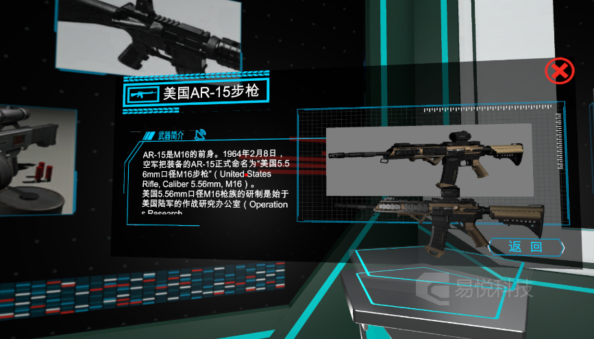 了解更多(duō)>>在虛拟VR環境下展示槍械、裝甲車(chē)、火(huǒ)炮、飛行(xíng)器(qì)等兵器(qì)相關的三維模型、圖片、文字、視(shì)頻等。